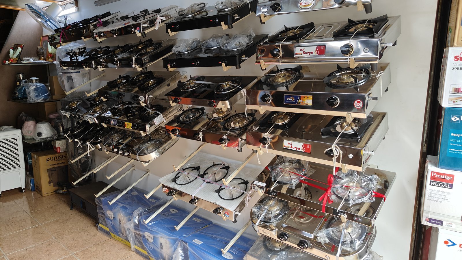 New Bharat Enterprises is a trusted name for home appliances in Ichalkaranji. As an authorized sub-dealer, we offer a wide range of high-quality home appliances from top brands. Our collection includes gas shegadis / gas stove and gas pipes from Surya, Butterfly, Prestige, U-Cook, and Maharaja. We also stock reliable water purifiers from Pureit, Pureit Classic, and Purosis. Looking for irons? Choose from top names like Havells and Philips. We offer branded mixers and mixer accessories from Philips, Havells, Bajaj, and Butterfly. You’ll also find energy-efficient hanging fans and table fans from Bajaj and Crompton.